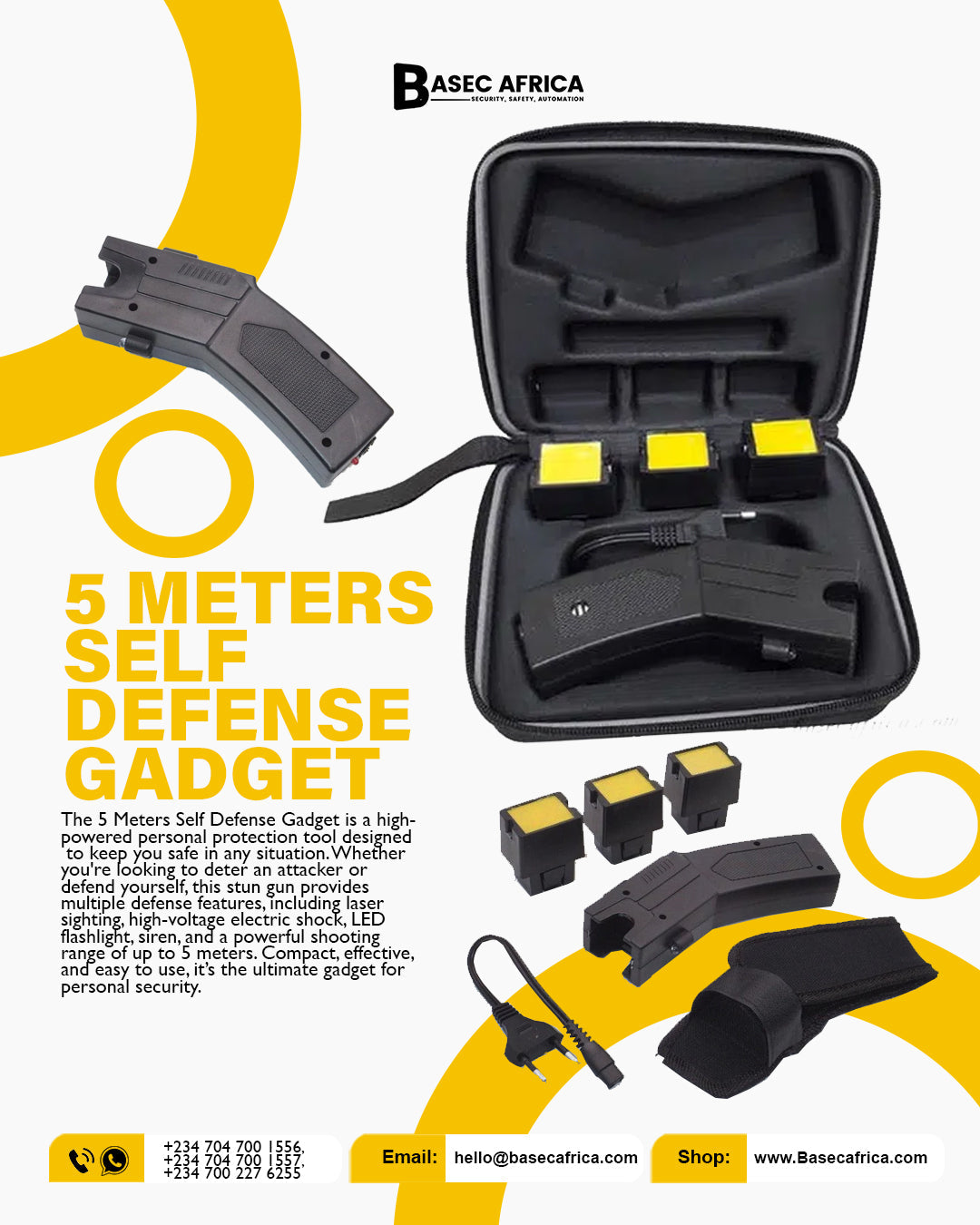 The 5 Meters Self Defense Gadget is a high-powered personal protection tool designed to keep you safe in any situation. Whether you're looking to deter an attacker or defend yourself, this stun gun provides multiple defense features, including laser sighting, high-voltage electric shock, LED flashlight, siren, and a powerful shooting range of up to 5 meters. Compact, effective, and easy to use, itβs the ultimate gadget for personal security.