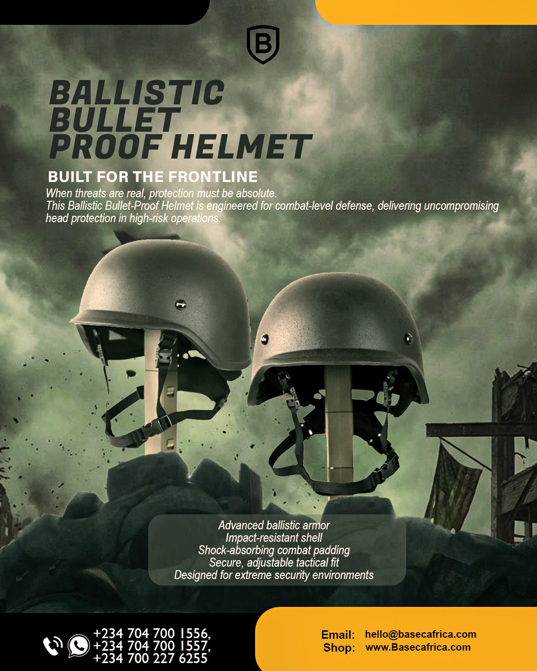 In high-risk environments, protection is not optional — it is essential. The Basec Ballistic Bullet-Proof Helmet is built for professionals who operate where safety cannot be compromised.