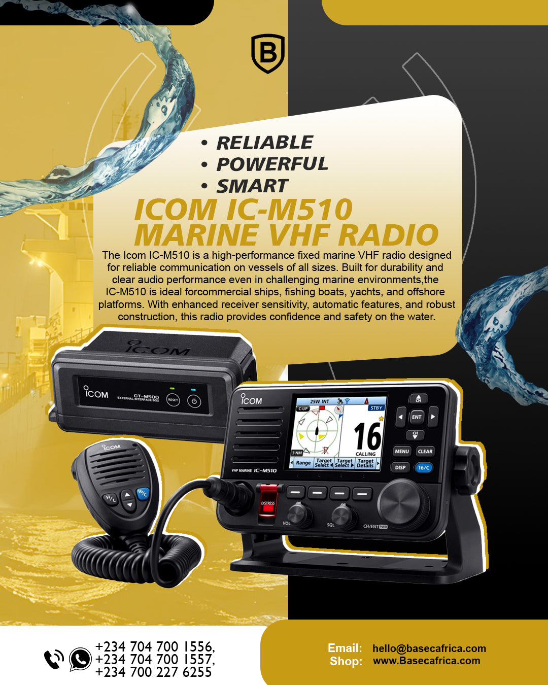 Designed for vessels of all sizes, the IC-M510 combines advanced technology with rugged construction. Its enhanced receiver sensitivity ensures crisp audio, while its smart features help operators stay connected, informed, and safe. From commercial ships to fishing boats, yachts, and offshore platforms, this radio adapts effortlessly to every maritime need.