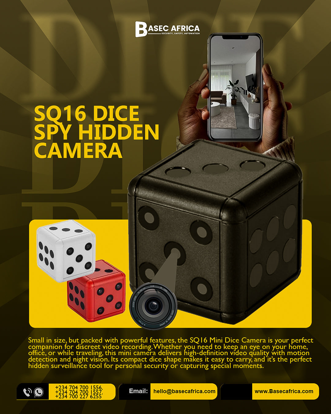 The SQ16 DICE Spy Camera is not just a novelty—it's a powerful, discreet tool for those who value peace of mind, personal safety, and real-time accountability.